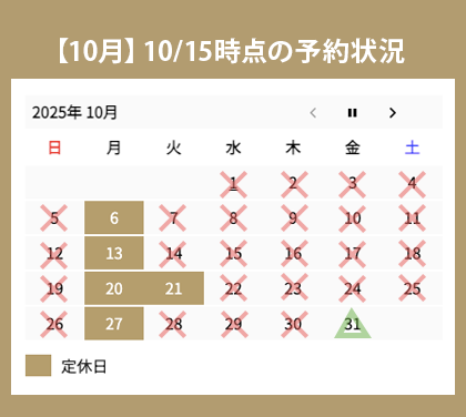 2025年10月の予約状況について ※10/15更新